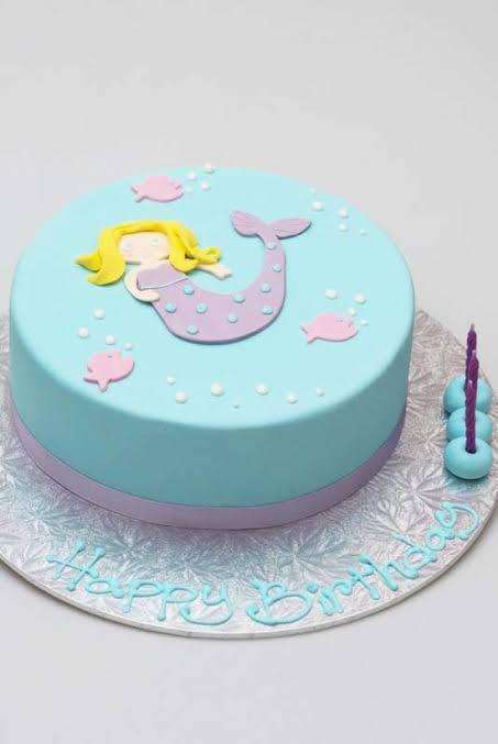 Mermaid theme - 2 Layer Vanilla cake with Buttercream Icing and Fondant detail