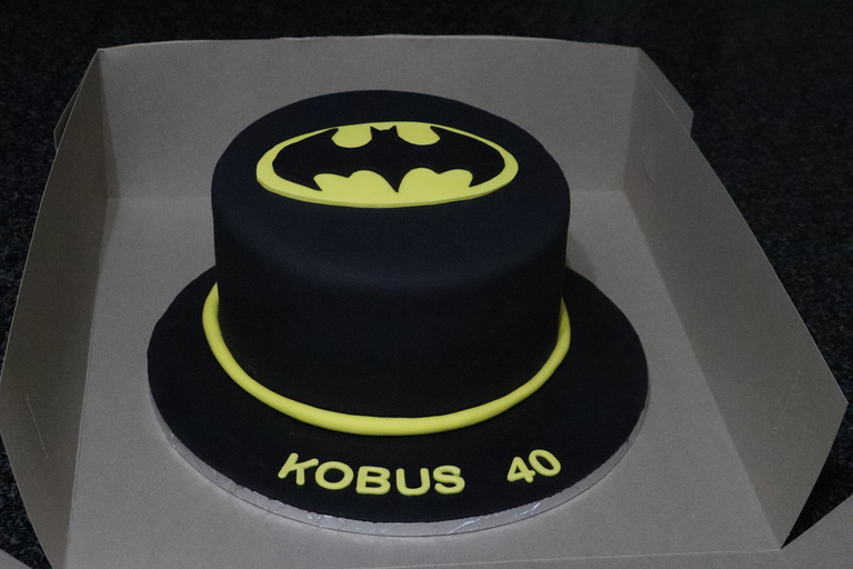 Batman theme - 3 Layer Chocolate cake with Buttercream Icing covered in Fondant with Fondant detail