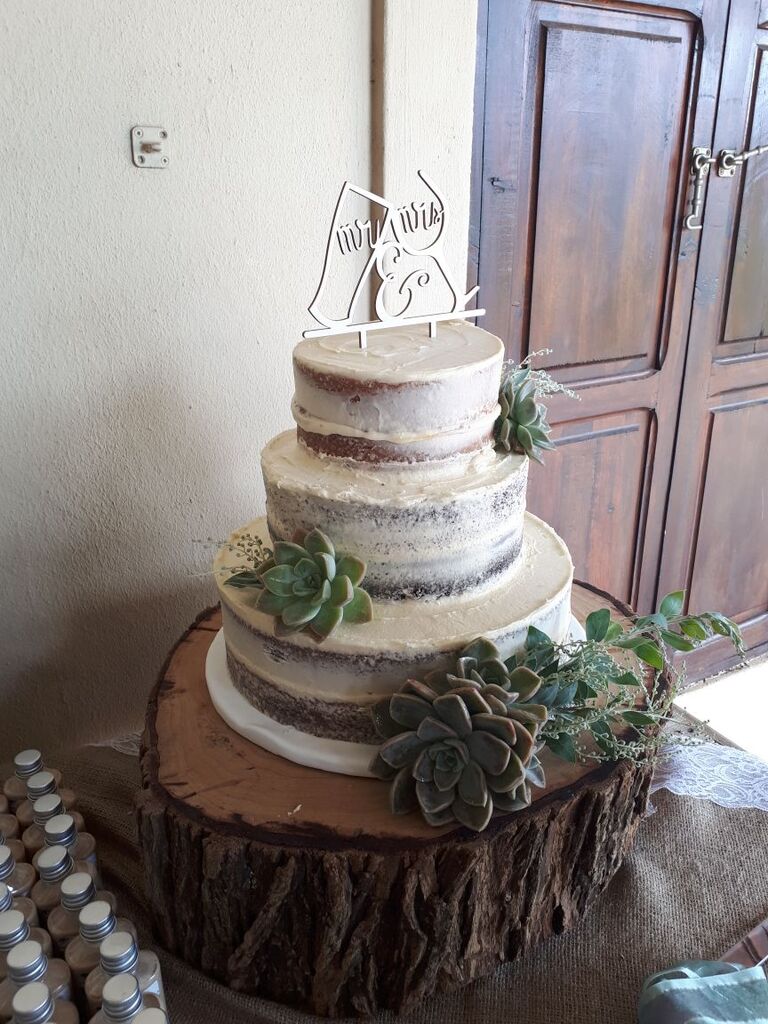Naked cake - 3 Tiered 2 layer Wedding cake (Carrot, Chocolate and Vanilla) with Buttercream Icing and fresh flower detail