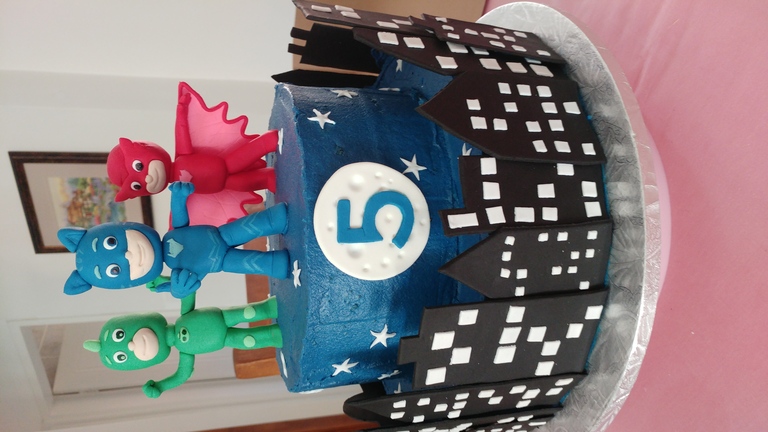 PJ Masks theme - 2 Tiered, 2 Layer chocolate cake with Buttercream icing and fondant detaill